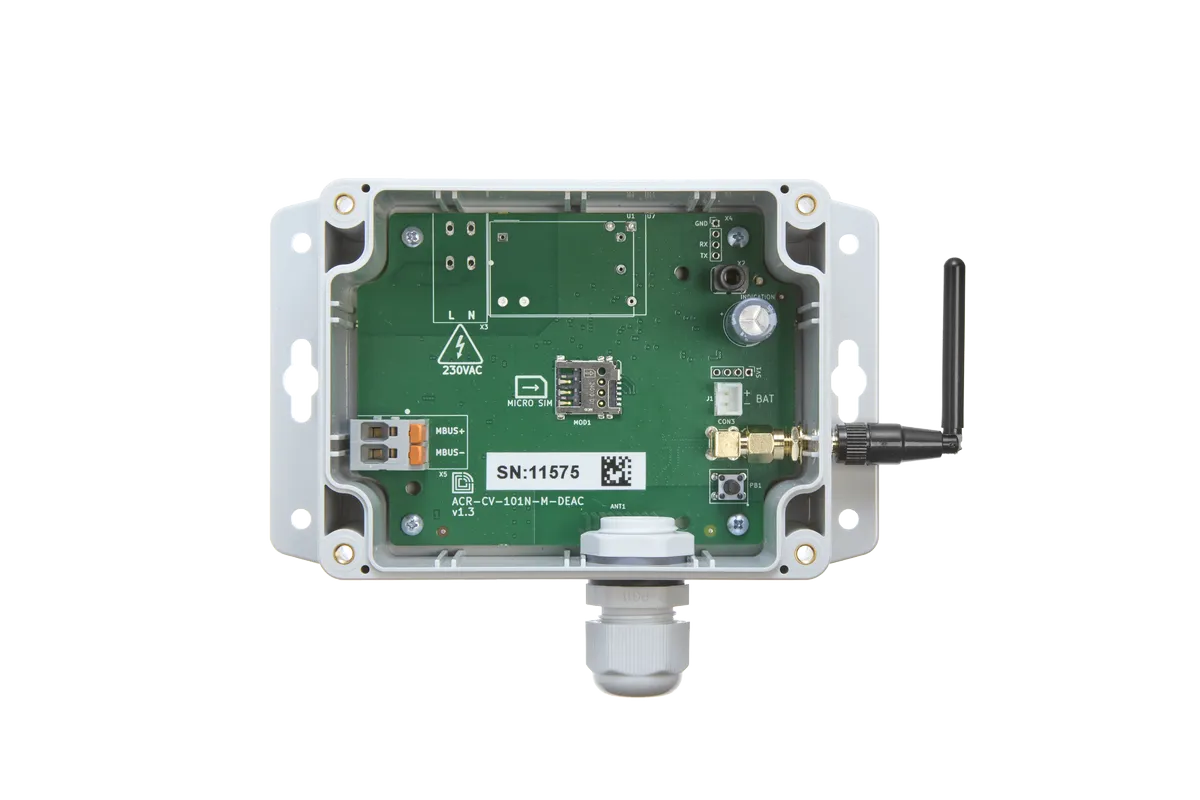 Převodník ACRIOS M-Bus na NB-IoT (Narrow Band IoT) je navržen pro efektivní odečty jakýchkoli drátových M‑Bus měřidel – typicky elektroměrů, vodoměrů a kalorimetrů zejména v teplárenském a vodárenském průmyslu. Zařízení umožňuje integraci tradičních M-Bus měřidel do bezdrátové sítě NB-IoT, což usnadňuje sběr dat o spotřebě v až patnáctiminutových intervalech.